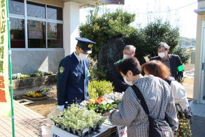 中海支店には1日よりATMが設置されて以来、はじめての年金受給日となり、 ATM利用者に対して花やマスクとともに啓発チラシなどを手渡しました。